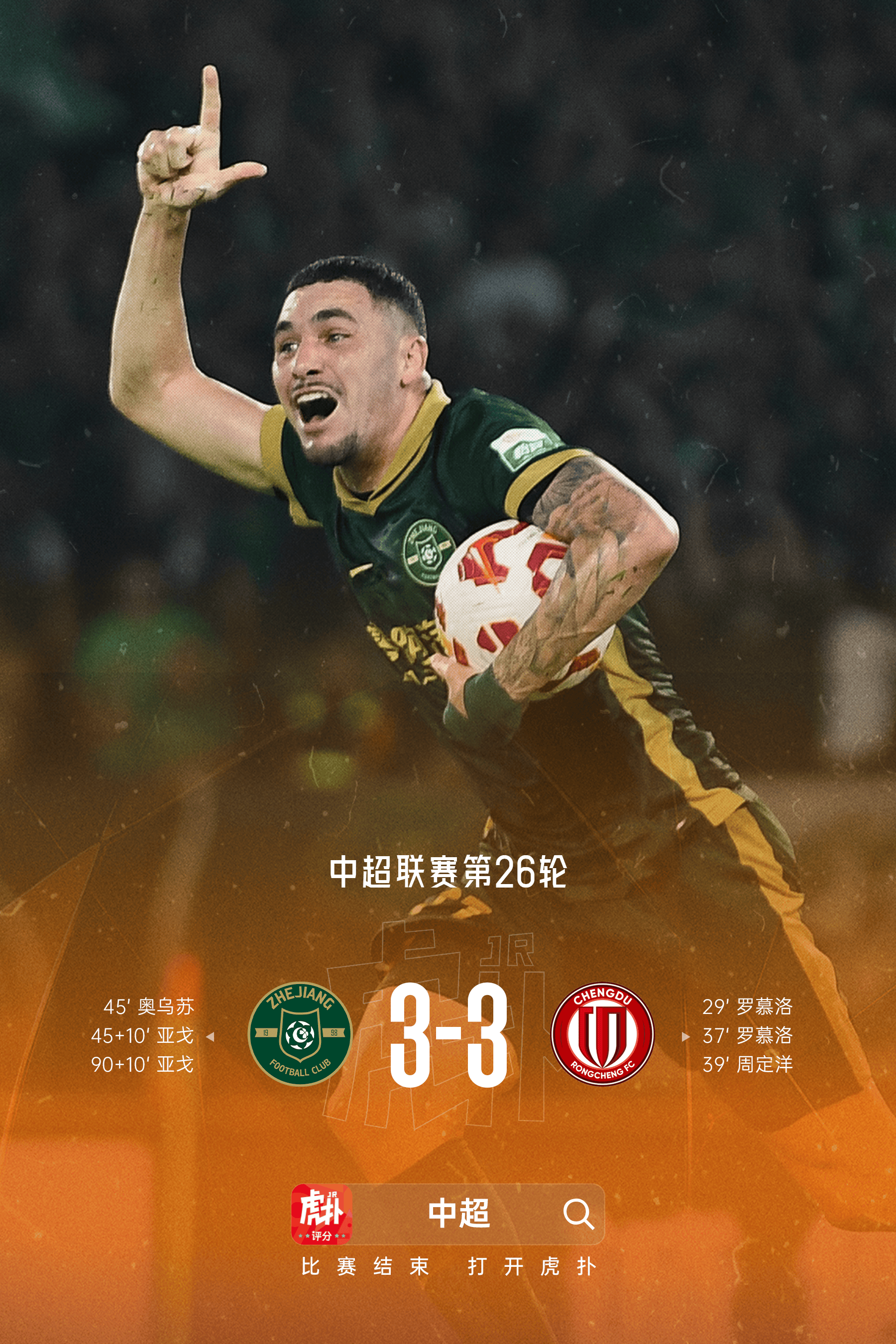 虎撲09月26日訊 在剛剛結(jié)束的一場(chǎng)中超聯(lián)賽中,浙江在主場(chǎng)憑借亞戈的浙江浙江中超進(jìn)球,3-3絕平領(lǐng)頭羊成都蓉城。時(shí)間賽季據(jù)中超聯(lián)賽官方報(bào)道,浙江在本賽季中超下半場(chǎng)的補(bǔ)時(shí)階段已經(jīng)攻入12粒進(jìn)球,超越2024賽季北京國(guó)安的11球,刷新自O(shè)pta統(tǒng)計(jì)相關(guān)數(shù)據(jù)以來(lái)(2012年)任一球隊(duì)單賽季該時(shí)段進(jìn)球紀(jì)錄;同時(shí)浙江俱樂(lè)部綠城也是自O(shè)pta統(tǒng)計(jì)相關(guān)數(shù)據(jù)以來(lái)(2012年),首次在中超聯(lián)賽中至少落后3球的情況下保持不敗。