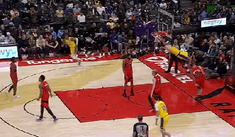 NBA常規(guī)賽,湖人客場對陣猛龍的分球比賽正在進行中。