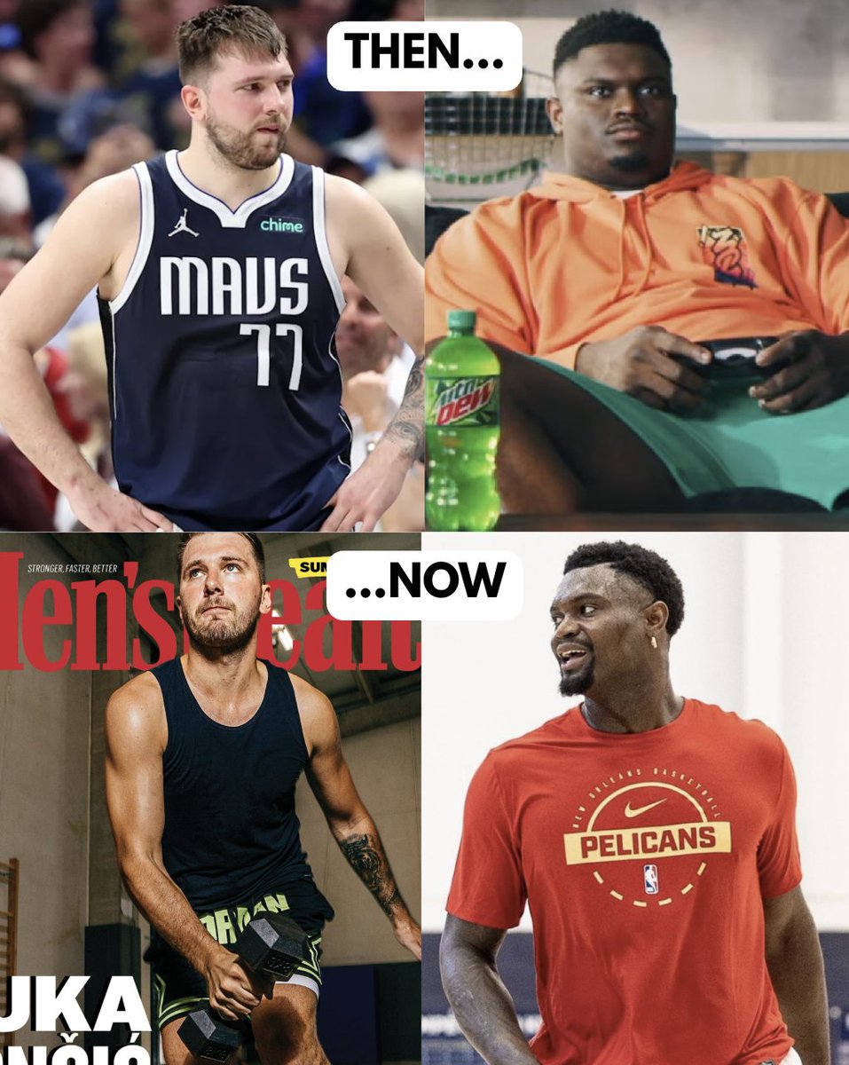 虎撲09月25日訊 今日美媒NBA Memes發(fā)布了一張盧卡-東契奇與蔡恩-威廉姆斯減肥前后對比的照片。